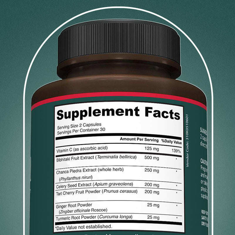 Наша добавка для поддержки мочевой кислоты состоит из смеси, включающей клинически изученный Аюрик, Вишню, Экстракт семян сельдерея, Куркуму, Чанка Пиедру, Имбирь и Витамин С.
